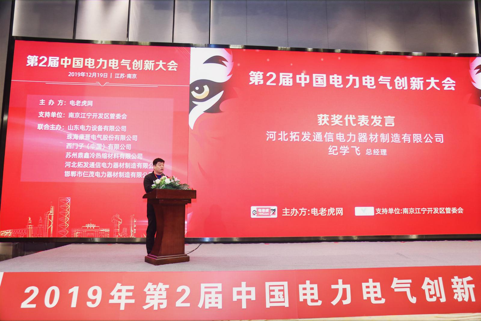河北拓發(fā)通信電力器材制造有限公司總經(jīng)理紀(jì)學(xué)飛先生代表獲獎企業(yè)發(fā)言進行了發(fā)言: